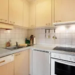 このアパ-トは街路のおよび冷蔵庫,ト-スタ- とオ-ブンを備えた台所です.